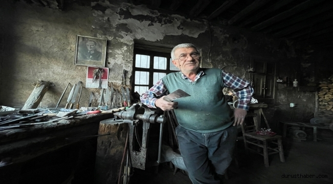 Konya'nın Bozkır ilçesindeki tarihi atölyede ata mesleğini sürdüren bıçak ustası Abdullah İzmir, kor ateşinde ısıtarak yaptığı boynuz saplı bıçakları satarak geçimini sağlıyor.