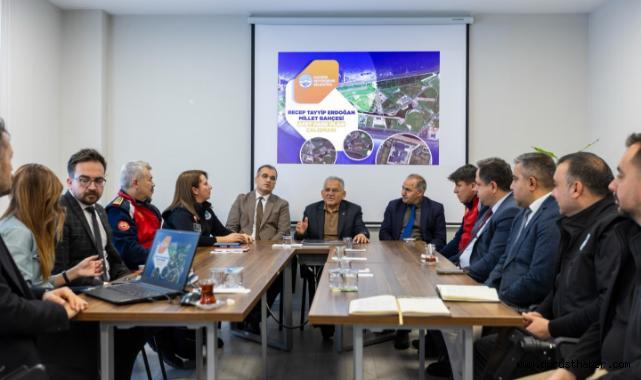 Recep Tayyip Erdoğan Millet Bahçesi’nde düzenlenen toplantıda, afet anlarında vatandaşların güvenli barınma ihtiyacının karşılanmasına yönelik mevcut alanlar, altyapı imkânları ve kurumlar arası koordinasyon ele alındı. Büyükkılıç, “Allah korusun olası afet anlarında vatandaşlarımızın güvenle kullanabileceği Afet Parkı modelimiz için barınma alanları, sosyal alanlar ve çocuklar için güvenli aktivite bölgeleri gibi birçok fonksiyonu ele aldık” dedi.