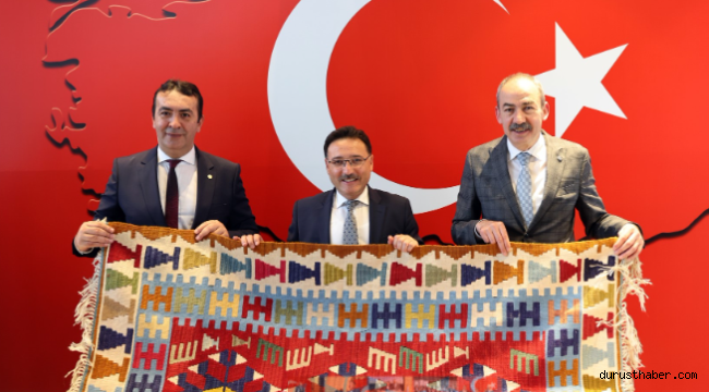 Yapılan konuşmaların ardından Başkan Gülsoy ile Meclis Başkanı Cengiz Aslan tarafından Vali Gökmen Çiçek’e ipek seccade hediye edildi.