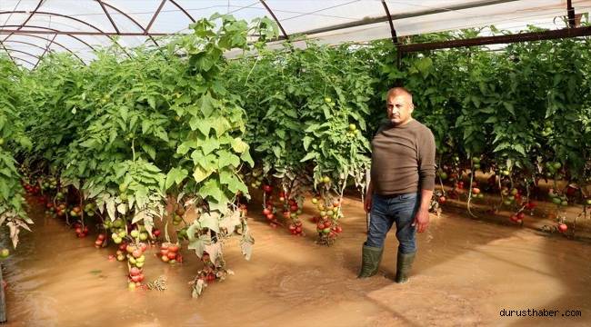 Suyun dağlardan geldiğini ve seraları bastığını anlatan Tüzün, "3 dönüm seram zarar gördü. Henüz iki kez hasat yapmıştım. Yaklaşık 200 bin lira zararım var. Yetkililere durumu bildirdik. Gelip inceleme yapacaklar. Allah'tan gelen bir felaket. Yapacak bir şeyimiz yok." dedi.Tüzün, evinin de bir metre çamurlu suyla dolduğunu, temizlemeye çalıştıklarını dile getirdi.Seracı Ahmet Şerment ise daha önce böyle bir olay yaşamadıklarını, suyun bir anda geldiğini belirtti.Seraların kapılarını, her yerini kapatmalarına rağmen suyun naylonu parçalayarak içeriye girdiğini ifade eden Şerment, "Bu zamana kadar hiç hasat yapmamıştım. İlk hasadı bugün yapmayı düşünüyordum. Suyun içinde kalan kırmızı olan meyveler hep çatladı. Bitki de içeresindeki su nedeniyle eriyecek ve kuruyacak. Şu anda yaklaşık 300 bin lira zararım var." diye konuştu.Bölgede hasar tespit çalışmaları devam ediyor.Selde zarar gören tarım alanları dron ile görüntülendi.