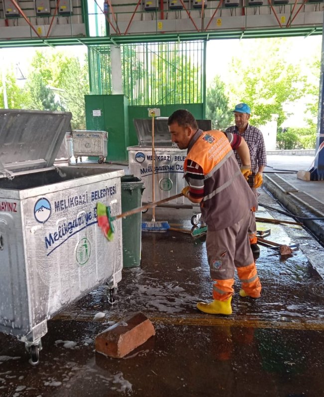 Melikgazi’de Kurban Bayramı dolayısıyla kurbanlık satışlarının yapıldığı hayvan pazarı, kesim yapılan yerler, cadde ve sokaklar Çevre Koruma ve Kontrol Müdürlüğü ekipleri tarafından temizlendi.