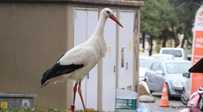 Özellikle çocukların ilgi gösterdiği "Leylek Yaşar" her gün kent sakinleri tarafından besleniyor