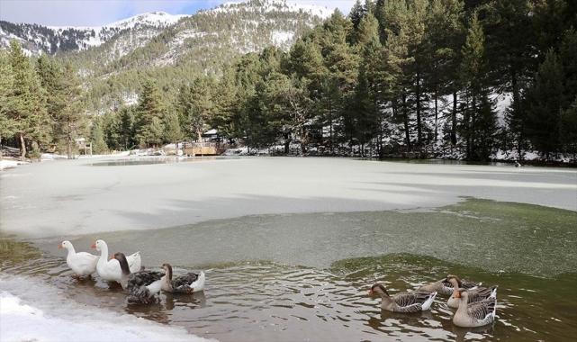 Trabzon'a 65, Gümüşhane kent merkezine 45 kilometre uzaklıktaki Limni Gölü Tabiat Parkı, her mevsim ziyaretçi çekiyor. Özellikle yazın sıcaktan bunalanların kaçış noktaları arasında yer alan Gümüşhane'nin Torul ilçesindeki tabiat parkı, kar yağışının ardından doğaseverler, dağcılar ve fotoğrafçılar tarafından tercih ediliyor. Bölgenin karla kaplanması ile yiyecek ve su bulmakta zorlanan ayı, çakal, tilki, domuz, kurt, sincap, porsuk ve sansar gibi yabani hayvanlar da tabiat parkına kadar iniyor.Yaban hayvanları, Doğa Koruma ve Milli Parklar Müdürlüğü ekiplerince kış mevsiminde tabiat parkına yerleştirilen fotokapanlarla görüntüleniyor.Kışın gölün üzeri buzla kaplanıyorLimni Gölü Tabiat Parkı tesis sorumlusu Oğuzhan Çolak, AA muhabirine, turizm sezonunu çok yoğun geçirdiklerini söyledi.Yazın bölgeye gösterilen ilginin beklentilerini karşıladığını belirten Çolak, yerli turistlerin yanı sıra özellikle Körfez ülkelerinden turistlerin Limni'yi tercih ettiğini anlattı.Çolak, 2 bin 150 rakımda krater gölünün de bulunduğu tabiat parkının 81 hektarlık alanı kapladığını ifade ederek, tesislerde 24 bungalov, restoran, mescit, kameriye, çardak, çocuk parkı ve seyir kulesi gibi imkanlarla ziyaretçilere hizmet sunduklarını dile getirdi. Tabiat parkının kışın özellikle macera severler tarafından tercih edildiğini vurgulayan Çolak, "Kış sezonunda aşırı yağan kardan dolayı tesisler kapalı oluyor. Tabiat parkına fotokapanlar kuruluyor. Biz de kameralarımızı aktif hale getiriyoruz. Kışın ziyaretçilerimiz buradaki yaban hayatını görmek için geliyor. Biz de fotokapanlar sayesinde alanın güzelliklerini görmüş oluyoruz." dedi.Çolak, kışın gölün üzerinin buzla kaplandığına işaret ederek, "Gölün üzerinde yürüyenler oluyor. Onun dışında doğaseverler geliyor, dağcılar, fotoğrafçılar, yürüyüşçüler, genelde macera ve doğaseverler geliyor. Yaban hayatına şahit oluyoruz. Genelde tilki çok geliyor. Ayı, kurt, domuz geliyor, onları da görüyoruz." diye konuştu. Muhabir: Seyit Ahmet Eksik