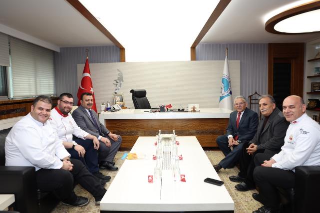 Büyükkılıç da nazik ziyaretten memnuniyet duyduğunu ifade ederek, Kayseri’nin her alanda olduğu gibi gastronomi alanında da kendini geliştiren ve adından söz ettiren bir şehir olarak ün kazanmaya devam etmesi yönünde gayretlerinin süreceğini vurguladı.