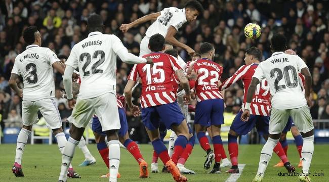 Atletico Madrid, 78. dakikada Antoine Griezmann'ın ortasında kafa vuruşuyla rakip ağları havalandıran Jose Maria Gimenez'in golüyle öne geçti: 0-1.Real Madrid'in beraberlik golü ise 85. dakikada diğer bir defans oyuncusu Alvaro Rodriguez'in kafasından geldi.İspanya ligindeki Madrid derbisinde 172. kez karşı karşıya gelen iki takım arasındaki rekabette 41. beraberlik geldi.Derbilerde Real Madrid 91, Atletico Madrid de 40 maçı kazandı.La Liga'da şampiyonluk yarışında yara alan Real Madrid 52 puanla 2. sırada bulunurken, Atletico Madrid 42 puanla 4'üncülükte yer alıyor.Lider Barcelona, yarın deplasmanda Almeria'yı yenmesi halinde puanını 62'ye yükselterek en yakın rakibi Real Madrid ile arasındaki farkı 10'a çıkaracak.