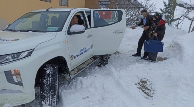 Malatya'da bir yandan kar küreme, yol açma ve tuzlama çalışması sürerken, diğer yandan Büyükşehir Belediyesi ekipleri, hasta ve mahsur kalan vatandaşların imdadına yetişiyor.