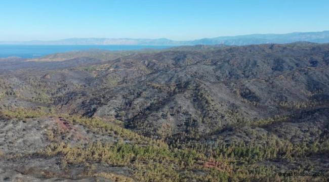 Kızılçam ağaçlarıyla kaplı 4 bin 500 hektar alanda etkili olan yangın, kısmen kontrol altına alındı. Soğutma çalışmaları, günün ilk ışıklarıyla 3'ü Katar'dan gelen 46 helikopter ve 1'i Azerbaycan'dan gelen 15 uçakla havadan da sürüyor. Karadan ise 405 arazöz ve 2 bin 202 iş makinesi, 119 su tankeri 28 TOMA ve 1169 araç ile 1204'ü orman işçisi olmak üzere 4 bin 587 kişilik personelle çalışmalara destek veriliyor. Soğutma çalışmaları, geniş alanda sürüyor.YANAN ALANLAN HAVADAN GÖRÜNTÜLENDİÖte yandan 5 gündür etkili olan ve büyük ölçüde kontrol altına alınan orman yangınında zarar gören alanlar, havadan görüntülendi. Daha önce yemyeşil olan orman alanlarının kapkara görüntüsü, yürek burktu.Tarım ve Orman Bakanı Vahit Kirişci, dün akşam yaptığı açıklamada yanan alanlarla ilgili bilgi vererek, "Net olarak 'Burası tamamen yanmış' denilen yerlerin dışında kısmen yanmış ama içinde bölümlerin olduğu alanlar var. Yaklaşık 4 bin 500 hektar alanın yandığını söyleyebiliriz. 72 saat dolmadan bu çalışma tamamlanmış oldu" demişti.