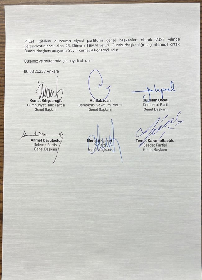 3. Masanın adayı Kemal Kılıçdaroğlu olarak açıklandı