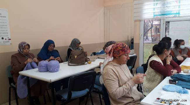 Meslek edinme kurslarında kadın kursiyerler hem istediği mesleği öğreniyor hem de sosyalleşiyor.