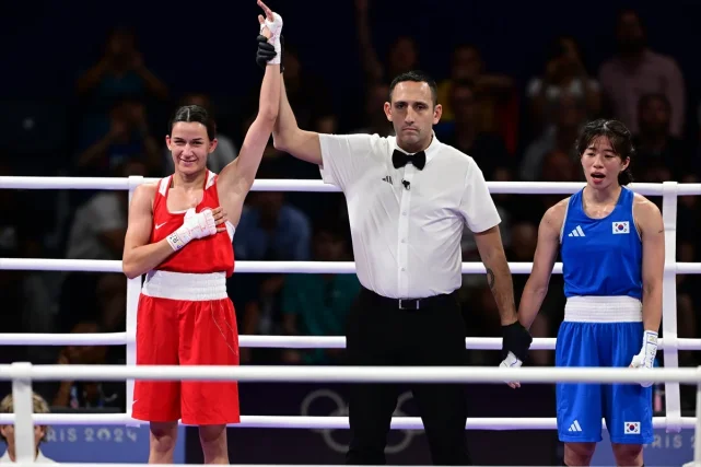 Paris 2024 Olimpiyat Oyunları'nda kadınlar 54 kilo boks yarı final müsabakaları North Paris Arena'da gerçekleştirildi.Yarı finalde milli sporcu Hatice Akbaş, Güney Koreli rakibi Aeji Im ile karşılaştı. İlk raundu 3-2'lik skorla kazanan Hatice, ikinci raundu da 4-1 önde tamamlayarak büyük bir avantaj sağladı.FİNALDE ÇİNLİ RAKİBİ İLE KARŞILAŞACAKSon raundda da rakibine 3-2 üstünlük sağlayan Hatice Akbaş, toplamda 3-2'lik skorla finale yükselmeyi başardı.
