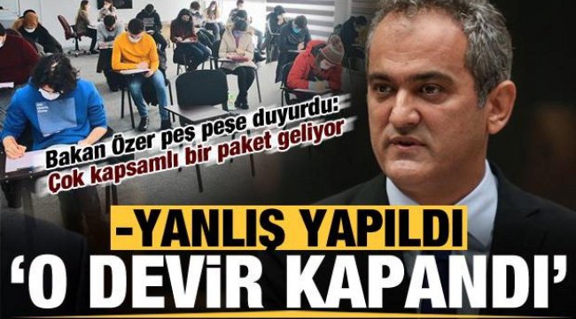 Millî Eğitim Bakanı Mahmut Özer “İnsanları tedirgin edecek adımlar atılmayacak” vurgusu yaparak eğitimde birçok kritik konuda önemli açıklamalarda bulundu. İstanbul’da eğitim editörleri ile bir araya gelen Bakan Özer ‘Eğitim yine mi değişti dedirtmeyecek’ bir dönemin başladığını ifade etti.“Sözlerle değil yapılan işlerle gündem olacağız” ifadelerini kullanan Özer’in açıklamaları özetle şöyle:* 4 temel konu üzerinde yoğunlaşacağım. Okul öncesine yatırım, imkân farklılıklarını kaldırmak, öğretmen eğitimi ve meslek lisesi... Eğer bunları çözersek sıkıntılar büyük oranda ortadan kalkar.* 5 yaşta okullaşma oranı yüzde 78. Ancak 3 yaş grubunda yüzde 14; 4 yaş grubunda ise yüzde 35’ler seviyesinde... 2022 sonuna kadar 3 yaş grubundaki okullaşma oranını %14’ten %50’ye, 4 yaştaki okullaşma oranını %35’ten %70’lere, 5 yaştaki okullaşma oranını ise %78’den %100’e çıkarmayı hedefliyoruz. 3 bin yeni anaokulu yapılacak, aynı proje ile 40 bin yeni ana sınıfı açılacak. Yapılacak atamalarımız bu rakamlara göre şekillenecek.ÖNCELİĞİMİZ YÜZ YÜZE EĞİTİMİ SÜRDÜRMEK