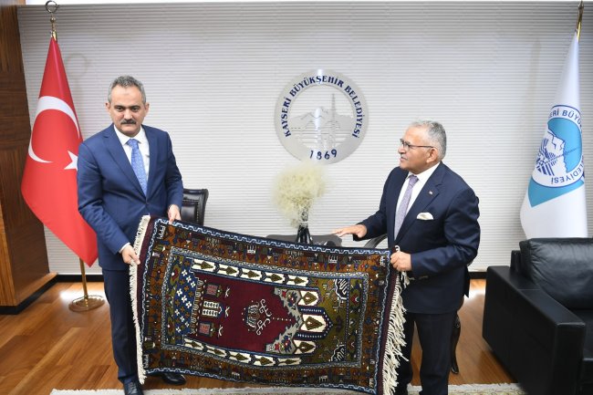 Çeşitli programlara katılmak üzere kente gelen Bakan Özer, Kayseri Büyükşehir Belediyesinde Büyükşehir Belediye Başkanı Memduh Büyükkılıç'tan, yürüttükleri çalışmalara ilişkin bilgi aldı.