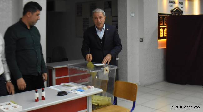 Milli Savunma Bakanı Hulusi Akar, Cumhurbaşkanı Seçimi'nin ikinci turu için oyunu Kayseri Lisesi'nde kullandı.