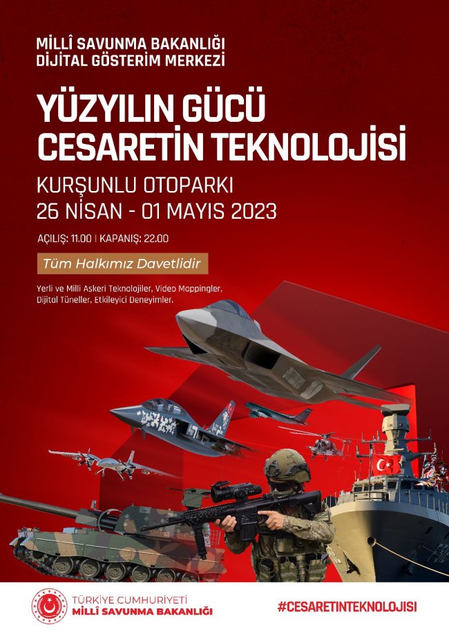 Türk Silahlı Kuvvetleri (TSK) envanterinde bulunan yerli ve milli silah, araç, gereç, teçhizat, mühimmat ve donanımları Kayserili vatandaşlarla buluşturmak amacıyla Milli Savunma Bakanlığı Dijital Gösterim Merkezi Kayseri Kurşunlu Otoparkında 26 Nisan-1 Mayıs tarihleri arasında vatandaşların ziyaretine açılacak. ‘Yüzyılın Gücü – Cesaretin Teknolojisi’ mottosuyla bir ‘deneyim merkezi’ olarak açılan Milli Savunma Bakanlığı Dijital Gösterim Merkezi’nde maketler, dijital gösterimler ve 3D animasyon filmlerle ülkemizin savunma sanayiinin kat ettiği aşama ve TSK’nın modernizasyonu anlatılıyor.