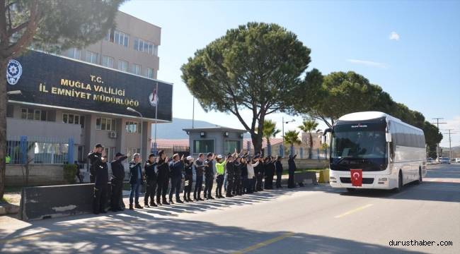 Adıyaman'da asayiş olaylarının önlenmesi ve diğer konularda yardımcı olmak amacıyla görevlendirilen 2 komiser yardımcısı ve 140 çarşı ve mahalle bekçisi için Muğla Emniyet Müdürlüğünde uğurlama töreni düzenlendi.