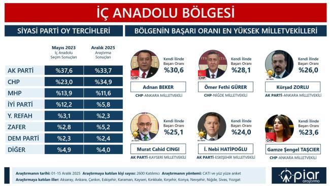 İç Anadolu Bölgesi’nde görev yapan milletvekilleri arasında yapılan değerlendirmede, AK Parti Kayseri Milletvekili Murat Cahid Cıngı en başarılı isimler arasinda yer aldı.