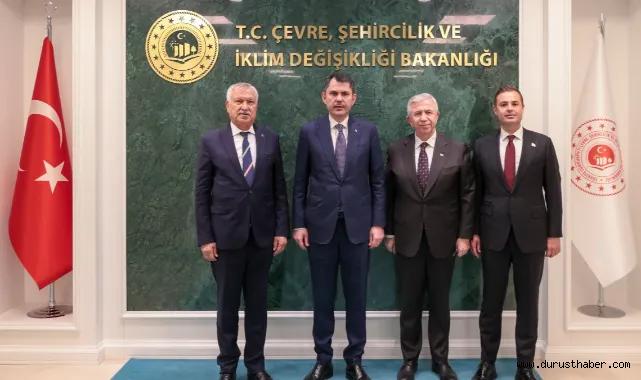 Çevre, Şehircilik ve İklim Değişikliği Bakanı Murat Kurum, Türkiye Belediyeler Birliği Başkan Vekili ve Adana Büyükşehir Belediye Başkanı Zeydan Karalar’ı, Ankara Büyükşehir Belediye Başkanı Mansur Yavaş’ı ve Balıkesir Büyükşehir Belediye Başkanı Ahmet Akın’ı makamında kabul etti.