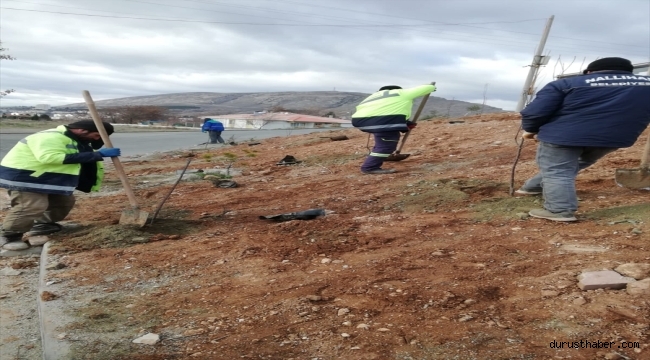 Ankara'nın Nallıhan ilçesinde fidanlar toprağa dikildi.