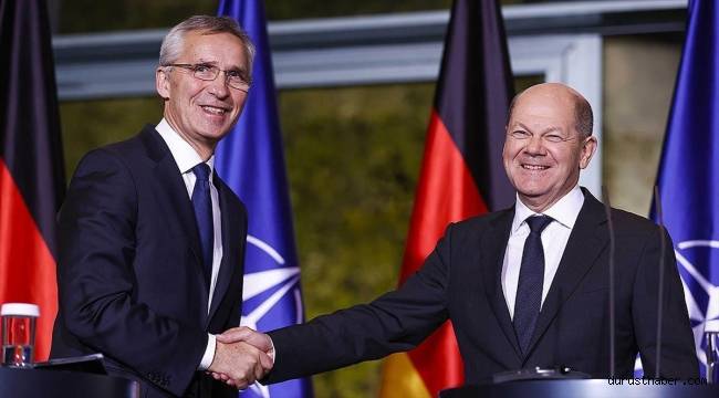 Almanya'nın Patriot hava savunma sistemlerinin Ukrayna'ya konuşlandırması konusundaki tartışmalara da değinen Stoltenberg, "Almanya'nın Polonya'ya Patriotları teklif etmesi çok değerli. Almanya sorumluluk sahibi bir müttefik gibi davranıyor. Ukrayna konusuna gelince Almanya oraya zaten bir hava savunma sistemi olan Iris-T gönderdi." diye konuştu.Stoltenberg, Patriotların, Ukrayna konusundan ayrı ele alınması gerektiğini söyledi.Ukrayna'nın hava savunma sistemine ihtiyacı olduğunu belirten Stoltenberg, ancak bu sistemlerin teçhizatı ile cephanelerinin tedarikinin de önemli olduğunu dile getirdi.Rusya'nın Ukrayna'ya açtığı savaşın uluslararası hukuka aykırı olduğunu bir kez daha dile getiren Stoltenberg, "Savaş nedeniyle kış daha da ağır geçiyor. Rusya bu savaşı kazanmamalı. (Rusya Devlet Başkanı Vladimir) Putin'in NATO'yu savaşın içine çekmesine izin vermeyeceğiz." ifadelerini kullandı.Stoltenberg, Almanya'nın, denizaltındaki boru hakları ve diğer altyapının korunması için NATO desteğiyle bir merkez kurulması önerisini memnuniyete karşıladığını sözlerine ekledi.Scholz: "Rusya bu savaşı kazanmamalı"Almanya Başbakanı Olaf Scholz da NATO'daki müttefikleriyle Ukrayna'ya gerekli olduğu müddetçe desteklerini sürdüreceklerini bildirdi."Rusya bu savaşı kazanmamalı." diyen Scholz, NATO'nun savaşa taraf olmaması gerektiğini bu sayede dünya çapında bir gerilime yol açılmamış olacağını ifade etti.NATO'nun, Almanya ve müttefiklerinin temel güvenliği için sigorta konumunda olduğunu belirten Alman Şansölye, bir sonraki NATO toplantısına kadar İsveç ve Finlandiya'nın birliğe üye olmalarını arzuladıklarını dile getirdi.Scholz, Patriotların Ukrayna'ya verilip verilmeyeceği sorusuna cevap vermekten kaçınarak Polonya'ya yaptıkları teklife atıfta bulundu.Alman Başbakan, "Polonya'nın güvenliğini güçlendirmek istiyoruz. Polonya ile temas sürüyor ve bu henüz tamamlanmadı." dedi.Almanya Silahlı Kuvvetleri olan "Bundeswehr"in mühimmat tedariki konusunda son yıllarda yanlış bir yol izlendiğini söyleyen Scholz, "Sadece Ukrayna'daki savaş nedeniyle değil, aynı zamanda kendi rakamlarımıza da baktığımızda orada sürekli bir tedariki garanti edebilmenin ne kadar önemli olduğunu şimdi somut olarak anlıyoruz." diye konuştu.Scholz, Savunma Bakanı Christine Lambrecht'in son yıllardaki bu eksiklikleri giderme konusunda son derece kararlı olduğuna işaret ederek "Bu, kolay bir operasyon değil. Bunun başarılı olması için elinden geleni yapıyor ve başarılı olacak." ifadelerini kullandı.