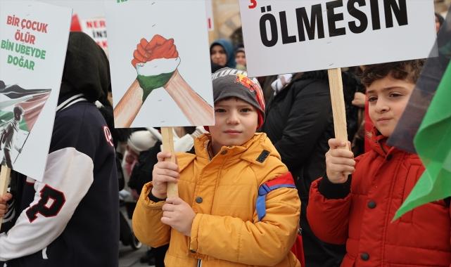 Nevşehir'de anneler ve çocukları, İsrail'in Filistin'e yönelik saldırılarını protesto etti. Filistin'e Destek Platformu tarafından düzenlenen "Zulme karşı anneler ve çocuklar buluşuyor" etkinliği, Kurşunlu Camii önünde gerçekleştirildi.Ellerinde, "Çocuklar ölmesin", "Annemi istiyorum", "Acının ırkı olmaz", "Çocukları kim koruyacak" yazılı döviz taşıyan çocuklar şiir okudu, "Çocuklar ölürken sessiz kalınmaz" sloganı attı.Çocuklar adına konuşan 6 yaşındaki Hafsa Çakmak, savaşın durmasını istediklerini belirterek, "Filistin'deki çocuklar bizim kardeşimizdir. Çocuklar ölmesin, biz kardeşlerimizin yanındayız. Oyun oynamak ve yaşamak onların da hakkı. Filistin'deki kardeşlerimize selam olsun." dedi.Anneler adına konuşan Esra Tutal da İsrail'e karşı herkesin gücü çerçevesinde bir şeyler yapabileceğini, boykotun da küçümsenmeyecek tepki olduğunu ifade ederek, "Gazze'de çocuklar, dünyadaki çocuklar kadar eğitim alma ve yaşama hakkına sahiptir. Hiçbir çocuk bu haklardan mahrum edilemez. Biliyoruz ki birçok ülkede vicdanı hür, aklıselim herkes bizim gibi ayakta. Filistinli çocuklar özgür oluncaya kadar durmayacağız."diye konuştu.Etkinlik, yapılan duanın ardından sona erdi.