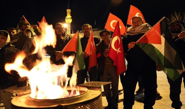 Nevşehir'de, İsrail'in saldırıları altında hayatta kalma mücadelesi veren Gazze halkına destek amacıyla "Ateş başında Gazze nöbeti" etkinliği yapıldı. Nevşehir Genç İHH Teşkilatınca Kurşunlu Camisi önünde gerçekleştirilen programa katılan vatandaşlar, Türk ve Filistin bayrakları taşıdı.Yakılan ateşin başında bir araya gelen katılımcılar Kur'an-ı Kerim okuyup dua etti.Genç İHH İl Temsilcisi Mehmet Berat Tural, İsrail'in dünyanın gözü önünde Gazze halkına yönelik soykırım uyguladığını, bu durumun vicdanları kanattığını söyledi.Gazze'de her gün çocuk, yaşlı ayrımı gözetilmeden sivillerin topluca katledildiğini kaydeden Tural, bu sürecin insanlık tarihine kara leke olarak geçtiğini ifade etti.İsrail'in saldırıları nedeniyle 7 Ekim'den beri binlerce çocuğun katledildiğini dile getiren Tural, şöyle konuştu:"Babalar çocuklarını poşetlerin içinde taşıdı. İnsanlar enkaz altındaki cenazelerini bulamaz oldu. Arama kurtarma ve sağlık yardımı bile Gazze'ye giremiyor. Dünyanın bütün liderlerine çağrımızdır, Gazze'ye insani yardımların gitmesi için biz hazırız, ümmetin yiğitleri, esnafımız, öğretmenlerimiz, imamlarımız, işçimiz, çiftçimiz hazırdır. Biz Gazze'nin yaralarını sarmak istiyoruz. Sadece ekmek gönderen değil, ellerinden de tutan olmak istiyoruz."Etkinliğin, sivil toplum kuruluşlarının desteğiyle kentin farklı noktalarında sürdürüleceği öğrenildi.