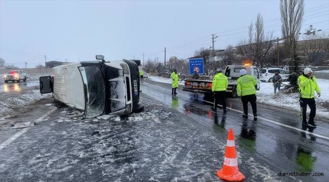 Acıgöl ilçesinden Kavak beldesindeki patates deposuna işçi taşıyan H.A. idaresindeki 50 AR 695 plakalı minibüs, yağış nedeniyle kayganlaşan Acıgöl-Nevşehir kara yolunda karşı şeride geçerek devrildi.