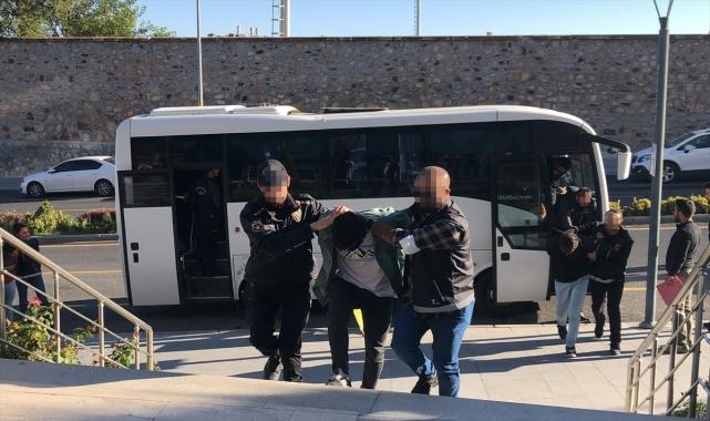Nevşehir ve Niğde'de polisin helikopter destekli eş zamanlı uyuşturucu operasyonunda gözaltına alınan 82 şüpheliden 40'ı adliyeye sevk edildi. Nevşehir Emniyet Müdürlüğü ekiplerinin, uyuşturucu satıcıları ve kullanıcılarına yönelik eş zamanlı operasyonunda gözaltına alınan 82 şüphelinin emniyetteki işlemleri tamamlandı.Şüphelilerden 40'ı sağlık kontrolünden geçirilip adliyeye götürüldü, 42'si ifadeleri alınarak serbest bırakıldı.Nevşehir Emniyet Müdürlüğü ekipleri, Cumhuriyet Başsavcılığının talimatı doğrultusunda 10 Ekim'de Niğde ve Nevşehir kent merkezleri ile bazı ilçe ve beldelerde 82 şüpheliye ait 86 adrese polis helikopteri, dron ve dedektör köpeklerin desteği ile eş zamanlı operasyon düzenlemişti.Özel harekat polislerinin de yer aldığı 340 personelin katılımıyla gerçekleştirilen operasyonda 82 şüpheli gözaltına alınırken, adreslerde 7 kilo 313 gram sentetik uyuşturucu, 262 gram esrar, 6,5 gram eroin, 233 sentetik uyuşturucu hap, 3 hassas terazi, 11 ruhsatsız tabanca ile 119 fişek ele geçirilmişti.