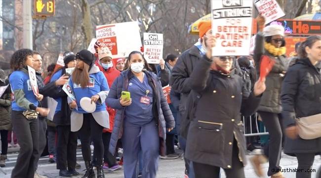 New York'ta iki büyük sağlık kuruluşunda çalışan ve sayıları 7 bini aşan hemşire ve sağlık çalışanı, personel yetersizliği ve düşük maaşları protesto amacıyla greve gitti.
