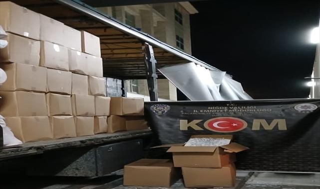 Niğde'de, 3 milyon 750 bin dolu makaron (filtreli sigara kağıdı) ele geçirilen tırın sürücüsü gözaltına alındı. Valilikten yapılan yazılı açıklamaya göre, İl Emniyet Müdürlüğü Kaçakçılık ve Organize Suçlarla Mücadele Şubesi ekipleri, Niğde-Adana otoyolu Eminlik gişeleri yakınlarında bir tırı durdurdu.Araçta yapılan aramada, 3 milyon 750 bin dolu makaron ele geçirildi.Gözaltına alınan sürücü hakkında adli işlem başlatıldı.