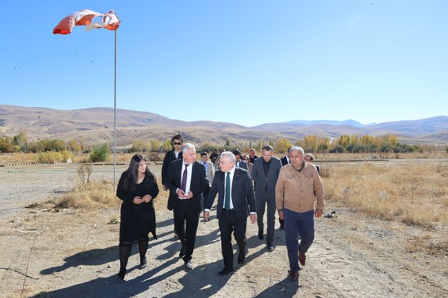 Valilikten yapılan açıklamaya göre, Vali Yılmaz Şimşek, Divriği ilçesinde çeşitli ziyaretlerde bulundu.Nuri Demirağ tarafından 81 yıl önce Divriği ilçesine kazandırılan ve yeniden sivil uçuşlara açılacak havalimanı sahasında incelemelerde bulunarak pisti gezen Şimşek, yetkililerden son süreç hakkında bilgi aldı.Havalimanının yapımını üstlenecek Divriği Sivil Havacılık ve Turizm Geliştirme sahibi Arslan Küçükemre ile telefonda görüşen Şimşek, ilçenin turizmine önemli katkılar sağlayacak iş insanına teşekkür ederek, gereken tüm desteğin verileceğini vurguladı.- Çiğdemli köyü turizme kazandırılacakŞimşek, havalimanı ziyaretinin ardından Divriği'nin en eski yerleşim yerlerinden Çiğdemli (Tuğut) köyünü ziyaret etti.