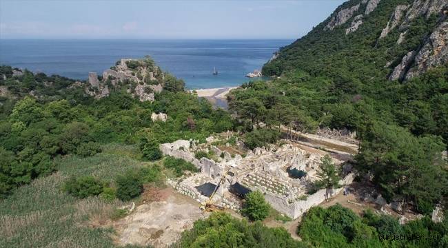 Kazı başkanı ve Pamukkale Üniversitesi Fen Edebiyat Fakültesi Sanat Tarihi Bölümü Öğretim Üyesi Doç. Dr. Gökçen Kurtuluş Öztaşkın, AA muhabirine, Kültür ve Turizm Bakanı Mehmet Nuri Ersoy'un destekleriyle bu yıl 27 noktada birden çalışmalara başladıklarını söyledi. Olympos'taki çalışmaların son 3 yıldır 12 ay boyunca kesintisiz devam ettiğini dile getiren Öztaşkın, bu uygulamanın da çalışmaları hızlandırdığını ifade etti.Bu yıl kazı çalışmalarıyla aynı anda restorasyon ve konservasyon çalışmalarını yürüteceklerin belirten Öztaşkın, şunları kaydetti:"Yeni bulgularımız var, bunlar heyecan verici. Her buluntuya göre yeni bir yol çiziyoruz ve yeni soruların peşinden koşuyoruz. Bu yıl için ödenek miktarımız oldukça yüksek. Bu elimizdeki projelerin sonlanması demek. Bu destekler sayesinde sadece kazıp, göstermek değil, hem korumak hem restorasyonu yapmak hem de alanların ziyaretçiler tarafından algılanmasını kuvvetlendirmeye yönelik çalışmalar yapabileceğiz. Bugüne kadar yaptığımız çalışmaları bu yıl içerisinde taçlandıracağız.""Denize gelenler tarihi dokunun içerisinden geçiyor"Antik kentteki kazı çalışmalarının onda birlik bölümünde çalışmaların sürdüğünü aktaran Öztaşkın, bu yıl ise ödeneğin yüksek olması dolayısıyla büyük bir aşama kaydetmeyi planladıklarını bildirdi.Öztaşkın, arkeolojik çalışmaların uzun soluklu olduğuna işaret etti. Kent dokusuyla ilgili genel bilgilere sahip olduklarını anlatan Öztaşkın, Olympos'ta yapılar, caddeler, dükkanlar gibi bütün bir kentsel dokunun korunarak bugünlere kadar gelebilen ender kentlerden birisi olduğunu söyledi.Antik kentin, sahil ve tarih turizmini içinde barındırdığı için de ayrıcalıklı olduğunu vurgulayan Öztaşkın, "Olympos, deniz kıyısında kurulmuş liman kenti. Kullanıma açık sahiliyle kara arasında yerleşen bir antik kent olduğu için, deniz için gelen insanları da tarihi dokunun içerisine alıyor. Son dönemlerde deniz için kente gelen turistin vaktinin önemli bir kısmını artık antik kentte geçirmeye başladığını gözlemledik." diye konuştu. Öztaşkın, küresel salgın öncesi Olympos'a gelen ziyaretçi sayısının 3 binlerin üzerinde olduğunu, salgın sürecinde rakamların düştüğünü ancak son 2 yıldır tekrar tırmanışa geçtiğini belirtti.Özellikle bu yaz turizmdeki hareketlilik doğrultusunda Kovid-19 salgını öncesi rakamların da üstünde ziyaretçi beklediklerine işaret eden Öztaşkın, bu doğrultuda bölgede bir yandan kazı çalışmalarını yürütürken bir yandan da antik kenti ziyarete açtıklarını dile getirdi. Olympos Çevre Koruma ve Turizmi Geliştirme Dernek Başkanı Halil Karataş da antik kentin bölge turizmine önemli katkı sunduğunu söyledi.Yöre halkının da kentte çalışanlara destek verdiğini anlatan Karataş, "Burası hem sahil turizmine hem de tarih ve kültür turizmine hizmet ediyor. Antik kentin bölge açısından ne kadar önemli olduğunun bilincindeyiz. Bölgenin korunması için biz de elimizden geleni yapıyoruz." ifadelerini kullandı. Muhabir: Hatice Özdemir Tosun