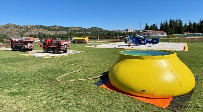 Pilot Deniz Vargün, "Yangınlarda helikopterlerin su kaynaklarının kısıtlı olan bölgelerde kullanılması amacıyla tasarlanan Helixpoll, 60 ve 80 ton kapasiteli. Deprem bölgesinde kurulum çalışmalarına başlandı." dedi.
