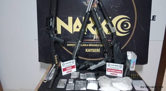 Narkotik Suçlarla Mücadele Şube Müdürlüğü ekipleri 3 gün önce uyuşturucu satıcılarının yakalanmasına yönelik çalışma yaptı. Yeni Sanayide bir otomotiv tamir dükkanına yapılan baskında lamba içlerinde, tablo arkalarında ve dolap içlerinde metamfetamin, esrar, tabanca ve çok sayıda tüfek ele geçirildi. Operasyon kapsamında gözaltına alınan ve sorgulanan 3 şüpheli çıkarıldıkları nöbetçi mahkemece tutuklanarak cezaevine gönderildi