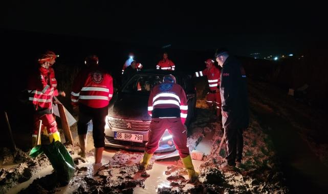 Kahramankazan ilçesinde otomobilleri çamura saplanan aileyi belediye itfaiye ekipleri kurtardı. Saray Mahallesi mevkisindeki çeşmeden su doldurmaya giden Erdoğan Ş. eşi ve engelli kızının içinde bulunduğu otomobil, patika yoldan geçerken çamura saplandı.Kendi imkanlarıyla bulunduğu yerden çıkamayan sürücünün ihbarı üzerine, bölgeye Kahramankazan Belediyesi Arama Kurtarma Birliği ekibi yönlendirildi.Bölgeye ulaşan ekip, aileyi Saraykent Sanayi Sitesi'nde bekleyen yakınlarına ulaştırdı. Araç da saplandığı çamurdan kurtarıldı.
