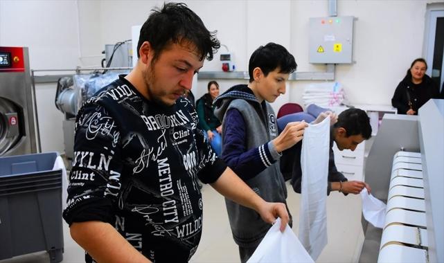 Özel gereksinimli bireylerin günlük hayatta yer almaları ile meslek edinmeleri amacıyla 2019'da Eskişehir Valiliğinin destekleriyle kurulan Özel Gereksinimli Gençler Kooperatifi bünyesindeki 4 atölyede, Odunpazarı Halk Eğitimi Merkezinden gelen eğitmenlerce otizmli, down sendromlu ve zihinsel engelli gençlere ve çocuklara eğitim veriliyor.Kooperatif çatısı altında, Sanayi ve Teknoloji Bakanlığınca Bursa Eskişehir Bilecik Kalkınma Ajansı (BEBKA) aracılığıyla uygulanan "Sosyal Gelişmeyi Destekleme Programı" kapsamında bir yıl önce hayata geçirilen çamaşır ve kuru temizleme atölyesindeki zihinsel engelli kursiyerler, eğitmenleri eşliğinde haftanın 5 günü kentteki bir otelin çamaşırlarını yıkıyor.Yaklaşık 4 ay süren kursta katılımcılar bir yandan meslek öğrenirken diğer yandan sosyal hayatta yer alma imkanı yakalıyor. Ayrıca kursiyerlere elde edilen gelirden ödeme yapılarak harçlıklarını çıkarmaları sağlanıyor. Daha önce 3 kursiyerin görev yaptığı atölyede, ikinci grupta 3 genç daha çalışmayı sürdürüyor."Kafeterya, montaj, oto yıkama ile çamaşır ve kuru temizleme atölyelerimiz var"Kooperatif Başkanı Figen Ersin, AA muhabirine, 27 yaşında otizmli bir kızı olduğunu söyledi.Özel gereksinimli bireylerin iş bulma sıkıntısı yaşadığını anlatan Ersin, şöyle devam etti:"20 özel çocuk sahibi aileyle böyle bir kooperatif kurmaya karar verdik. Türkiye'nin kamu destekli ilk sosyal kooperatifiyiz. Projemizi Eskişehir Valiliği İl Sosyal Etüt ve Proje Müdürlüğü yazdı, BEBKA karşıladı. Çamaşır ve kuru temizleme atölyesinde çalışan çocuklarımız, eğitim hayatlarını tamamlamış çocuklar. Anlaştığımız bir otel var. Otelden çamaşırlar geliyor, çocuklarımız makineye atıyorlar. Yıkandıktan sonra ütülüyorlar, katlıyorlar ve paketliyorlar. Ardından otele teslim ediyoruz. Hafta sonları hariç her gün çalışıyorlar. Çamaşır ve kuru temizleme atölyesi olarak kapımız herkese açık."Ersin, kursiyerlerin öz güvenlerinin arttığını ve gelirden pay aldıklarını sözlerine ekledi.Yönetim Kurulu Üyesi Kudret Yıldız da kooperatifin, özel gereksinimli bireylere istihdam sağlanması amacıyla kurulduğunu ifade etti.Bu kapsamda 4 atölye oluşturduklarını anlatan Yıldız, "Kafeterya, montaj, oto yıkama ile çamaşır ve kuru temizleme atölyelerimiz var. Böylece çocuklarımız işi kavrayarak el becerilerini geliştiriyorlar. En azından bir yerde işe girerek kendi paralarını kazansınlar, sigortaları olsun. Çocuklarımız okulları bittikten sonra eve kapanıyorlar. Dışarı da çıkaramıyoruz. Böyle aktivitelere katıldıklarında ise bilinçleniyorlar ve topluma faydalı oluyorlar." diye konuştu.Kursiyerler Recep Küçüksaydam, Kadircan Dilek ve Özcan Gürbüz de atölyede çalışmaktan duydukları mutluluğu dile getirdi. Muhabir: Atahan Gezer