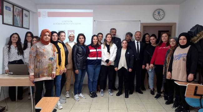 KAYSERİ- 25 Kasım, kadına yönelik şiddete karşı “Uluslararası Mücadele ve Dayanışma Günü” dolayısı ile Pusula 38 özel eğitim kurumunda Aile ve Sosyal Hizmetler İl Müdürlüğü ŞÖNİM( Şiddet Önleme ve İzleme Merkezi) personeli sosyal çalışmacılar Tuğçe Gündüz ve Besime Kütük, İl Jandarma Komutanlığı personeli çocuk şube kısım amiri astsubay Selda Günbay, uzman jandarma Mehmet Cinni ve uzman onbaşı Ahmet Aksoy’un katılımlarıyla kadın kursiyerlere, “Kadına şiddetin önlenmesi farkındalık” semineri verildi. Seminerde şiddetin çeşitleri, doğru bilinen yanlışlar, KADES uygulaması gibi konular hakkında kursiyerler bilgilendirildi. Böylece kurslarını bitirdikten sonra çalışmaya başlayacak özel güvenlik görevlileri sadece kendileri için değil çevrelerindeki şiddet olaylarını analiz edebilme ve şiddetle mücadele konusunda bilgilenmiş oldular. Pusula 38 Özel Eğitim Kurumu yetkilileri Abdullah Çelebi ve Seyit Ahmet Sengir, ŞÖNİM ile Jandarma personeli bu tür bilgilendirme faaliyetlerinin sürekli uygulanması ve bundan sonra yapılacak bilgilendirme toplantılarına erkek güvenlik görevlisi adaylarının da dahil edilmesi konusunda mutabık kaldılar.