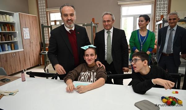 Bursa Büyükşehir Belediye Başkanı Alinur Aktaş, Mehmet Torun Aziz Torun Özel Eğitim Uygulama Okulu’nda eğitim gören özel öğrencilerle bir araya geldi. Okulun dokuma, el sanatları ve seramik atölyelerini gezen Başkan Aktaş, üretimde yeteneklerini gösteren özel öğrencilerle sohbet etti.