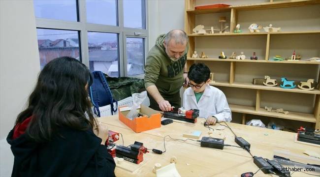 Ahşap tasarım atölyesi öğretmeni Ahmet Tolga Arıkan, AA muhabirine, öğrencilerin atölyede ilk olarak ahşabı tanıdığını belirterek, "Burada çeşitli ahşap oyuncaklar ve el ürünlerini öğrencilerimizle beraber yapıyoruz. Öğrencilerin ahşapla daha çok haşır neşir olmalarını sağlıyoruz. Tasarım becerilerini artırmaya çalışıyoruz. İleriki yaşamları için bir hobi edindirmeye çalışıyoruz." diye konuştu.Arıkan, "Öğrencilere, ahşapla neler yapılabilir, nasıl birleştirilir, nasıl yapıştırılır, nasıl zımparalanır gibi çeşitli bilgileri vermeye çalışıyoruz. İlk başta zımpara nedir bilmeyen veya tahtanın, ahşabın nasıl kesileceğini bilmeyen öğrencilerimiz bunu kesip şekillendirmeyi öğreniyor." ifadelerini kullandı.Öğrencilerin atölyede tasarladıkları çeşitli oyuncakları eve götürdüklerini, bu şekilde ailelerden de olumlu geri bildirimler aldıklarını dile getiren Arıkan, "İlerleyen dönemde evlerinde tamirat tadilat işleri de yapabilecekler. Ama şu an bunun için biraz erken. Dönem sonuna doğru onları da yapmayı öğrenecekler ve yapabilecekler." dedi."Atölyede güzel şeyler öğreniyoruz"
