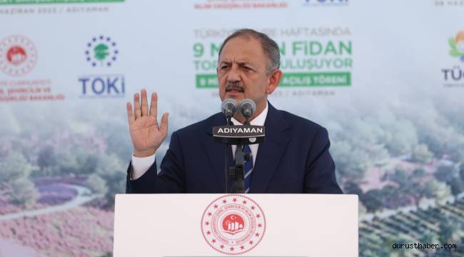 Çevre, Şehircilik ve İklim Değişikliği Bakanı Mehmet Özhaseki, 6 Şubat Kahramanmaraş merkezli depremlerden etkilenen Adıyaman ziyaretinde yaptığı açıklamada, “Emin olun böyle bir afetin altından kalkacak dünyada başka bir millet yok. Sonuna kadar sözümüzü yerine getireceğiz. İlk etapta 319 bin konut planlandı.” dedi. Bakan Mehmet Özhaseki, bir dizi program ve incelemelerde bulunmak üzere geldiği Adıyaman’da Türkiye Çevre Haftası kapsamında düzenlenen “9 Milyon Fidan Toprakla Buluşuyor” etkinliğinde 9 şehirde yapımı tamamlanan millet bahçelerinin eş zamanlı toplu açılış törene katıldı.Cumhurbaşkanı Recep Tayyip Erdoğan, programa video konferans sistemiyle canlı bağlantı ile katıldı.
