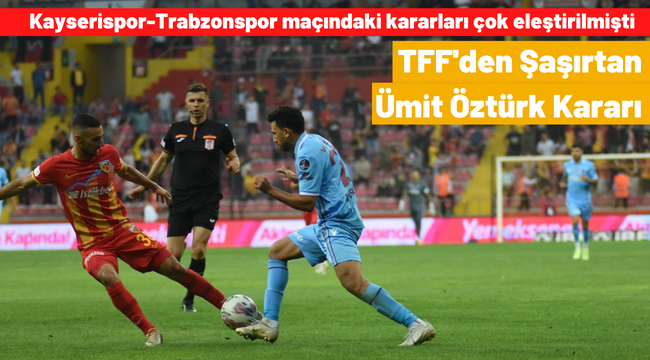 Türkiye Futbol Federasyonu (TFF) Merkez Hakem Kurulu'nun (MHK) Kayserispor - Trabzonspor maçının hakemi Ümit Öztürk’ü 2 hafta dinlendireceği iddia edildi.