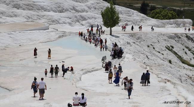 Yerli ve yabancı turistler travertenlerde yürüyüp su dolu havuzlara girme şansı buluyor. Yaz kış 36 derece sıcaklığa sahip antik havuza giren turistler antik kentleri de gezme fırsatı buluyor.Ziyaretçi yoğunluğu nedeniyle zaman zaman ören yeri girişinde kuyruk oluştuğu görüldü.Ankara'dan gelen Çağla Seyit, AA muhabirine ilk kez geldiği Pamukkale'yi çok beğendiğini ve memleketine döndüğünde arkadaşlarına Pamukkale'yi tavsiye edeceğini söyledi.Konya'dan ailesiyle birlikte gelen Evrim Bulut ise antik kent içinde gezmenin tarifsiz bir duygu olduğunu belirterek, "Çok güzel bir yer. Herkesin gelmesini tavsiye ediyorum. İnşallah buraya bir daha gelirim." diye konuştu.Ali Koç, Adana'dan geldiğini belirterek, travertenlerin fotoğraflardan daha güzel olduğunu, gezi süresince eğlenceli vakit geçirdiğini ifade etti. Muhabir: Sebahatdin Zeyrek