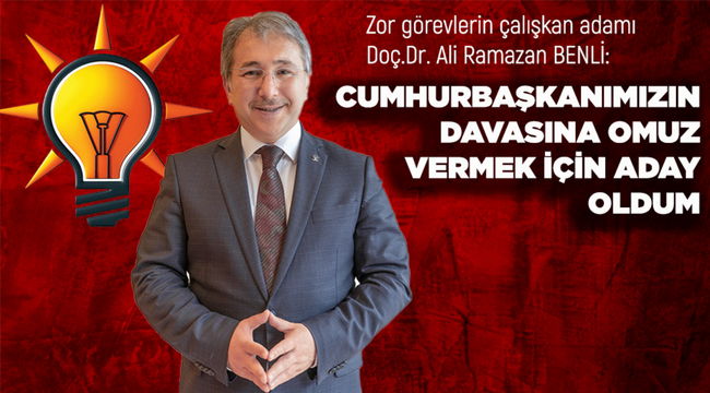 Doç.Dr.Ali Ramazan Benli, ‘’ Güçlü Türkiye vizyonunda, Sayın Cumhurbaşkanımızın çizmiş olduğu yolda, onun takımında, Ben de yer almak istiyorum’’ diyor.