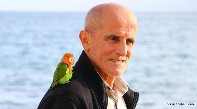 Tekirdağ'da 63 yaşındaki Hüseyin Alkaya, "Lara" ismini verdiği ve omuzunda taşıdığı papağanıyla sokaklarda ve sahilde geziyor.