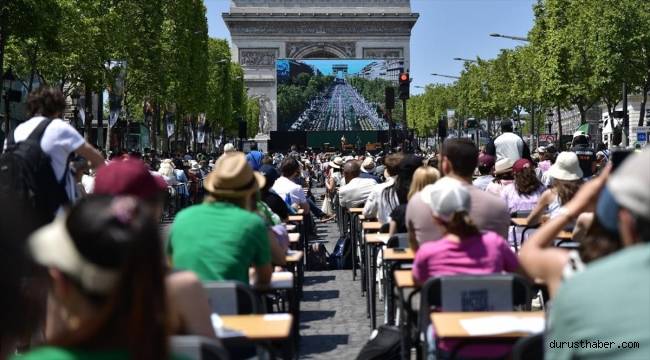 Boydan boya kurulan sıra ve masalara ek olarak büyük bir kara tahta yerleştirilen Şanzelize Caddesi'nde bugün arabaların yerini her yaştan öğrenci aldı. Dünya rekorunun amaçlandığı etkinlikte Guinness Dünya Rekorları'ndan bir ekip de hazır bulunuyor.Yerel saat ile 19.00'a kadar sürecek yarışma farklı katılımcılarla 3 seans olarak gerçekleştiriliyor. Önceden hazırlanan bir metnin 3 defa sesli okunacağı ve son okumada tahtaya yansıtılacağı etkinlikte, yapay zeka ve başka programlar kullanmadan metni 4 hatadan daha az şekilde deftere geçirenler başarılı sayılacak. Etkinliğe ünlü Fransız astronot Thomas Pesquet de öğretmen olarak katılıyor.