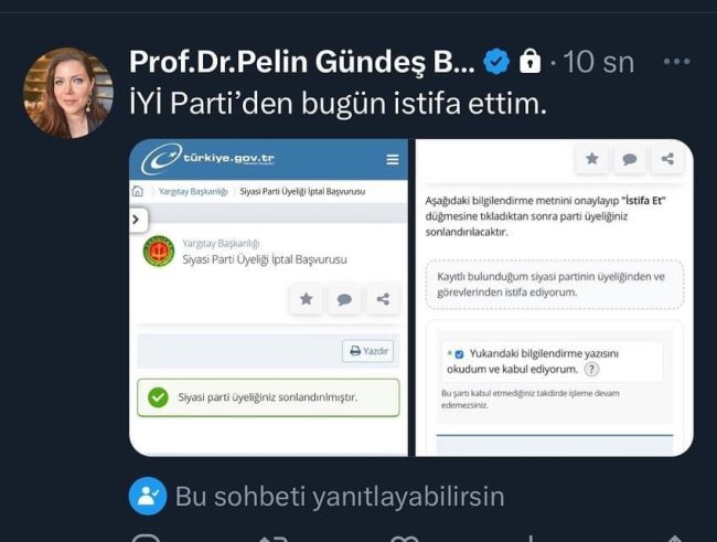 İYI Parti Kayseri Milletvekili Aday Adaylığına başvuru yapan ancak Milletvekili aday listesinde yer almayan Pelin Gündeş Bakır, partisinden istifa ettiğini duyurdu. 24. Dönem AK Parti Kayseri Milletvekili olan Bakır, AK Parti’den istifa ederek İYİ Parti saflarına geçmişti.