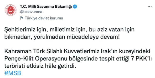 Milli Savunma Bakanlığı, duyurusunu şu ifadelerle yaptı;