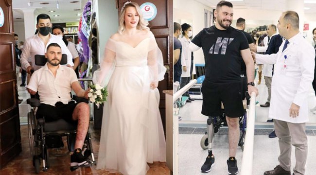 ‘Pençe-Şimşek’ harekâtında görev alan Uzman Çavuş İbrahim Yüzer (27), geçen nisan ayında teröristler tarafından döşenen el yapımı patlayıcının (EYP) infilak etmesi sonucu ağır yaralanarak sağ bacağı ve sağ kolunu kaybetti. Gazi Yüzer, temmuz ayında Ankara’da tedavi gördüğü Gülhane Eğitim ve Araştırma Hastanesi’nde (GATA) 2 yıldır nişanlı olduğu Funda Yüzer ile dünya evine girdi. GATA’da 15’e yakın ameliyat geçiren İbrahim Yüzer’e protez bacak takıldı. İbrahim Yüzer, tedavinin ardından yeniden ayağa kalkıp yürümeye başladı. Klinikte her gün yürüme egzersizleri yapan gaziye bu süreçte en büyük destekçisi yine eşi oldu. Düğünde eşinin yanında tekerlekli sandalyede oturan gazi, aylar sonra ilk kez onun elini tutup birlikte yürümenin mutluluğunu yaşadı. İkinci aşamada protez kol da takılacak olan gazi, ardından taburcu edilecek.HAYATA EŞİM BAĞLADIGazi İbrahim Yüzer, en büyük destekçisinin eşi olduğunu belirterek şöyle dedi: “En büyük hayalim dışarıda eşimin elini tutarak gezmek. Yeniden doğdum diyebilirim. İnandıktan sonra hiçbir engel yoktur.” DÜĞÜNE BEKLERİZFunda Yüzer ise yaklaşık 8 aydır hastanede tedavinin her aşamasına tanıklık ettiğini anlattı: “Çok zorlu bir süreçti ama üstesinden beraber gelebiliyoruz. Onunla gurur duyuyorum. O vatanı için bir savaş verdi ve şimdi onun için savaşma sırası bizde. Eşimle birlikte eskisi gibi el ele sokakta yürümek istiyoruz. Bunları yine yapacağımıza inanıyorum. İlk yürüdüğünü görünce çok duygulandım ve gururlandım. Gözünün içine bakıp o ışığı tekrar gördüm. Manisa’da önümüzdeki yıl düğünümüz olacak. Herkesi bu düğüne bekliyoruz.” ‘HER ENGELİ AŞACAK ŞEKİLDE YÜRÜYECEK’Ankara Gaziler Fizik Tedavi Eğitim ve Araştırma Hastanesi Ampute Rehabilitasyon Kliniği'nden Doç. Dr. Yasin Demir, İbrahim Yüzer'in çok azimli olduğunu vurgulayarak, "Beklediğimizden daha hızlı bir süreç yaşıyoruz. Şu anda düzgün zeminde yürüme aşamasındayız. Giderek bu seviyeyi yükselteceğiz. Yaklaşık 1,5 ay sonra dışarıda yürüyebilecek seviyeye getirmeyi planlıyoruz. Toplum içinde istediği her engeli aşacak şekilde yürümesini hedefliyoruz" diye konuştu.