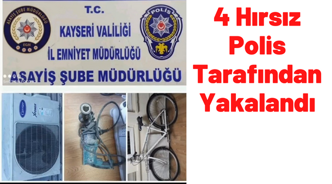 Kayseri İl Emniyet Müdürlüğü Asayiş Şube Müdürlüğü Hırsızlık ve Yankesicilik Büro Amirliği ekiplerince gerçekleştirilen çalışma neticesinde ikametten hırsızlık yapan 4 kişi yakalandı.