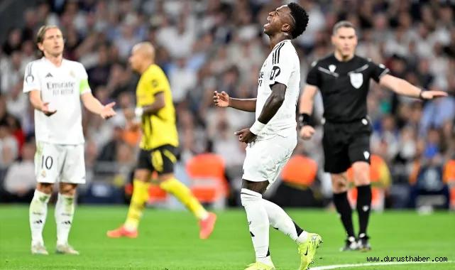 UEFA Şampiyonlar Ligi 3. hafta maçında Real Madrid, sahasında Nuri Şahin'in ekibi Borussia Dortmund ile karşı karşıya geldi.Santiago Bernabeu'deki mücadeleyi Real Madrid 5-2 kazandı.MADRID'DEN İKİNCİ YARIDA MÜTHİŞ GERİ DÖNÜŞBorussia Dortmund, 30. dakikada Donyell Malen ve 34. dakikada Jamie Bynoe-Gittens ile devre arasına 2-0 ile gitti.Real Madrid, ikinci yarıda geri dönüşe imza attı. İspanyol devi önce Antonio Rüdiger ile 60. dakikada farkı bire düşürdü. Real Madrid'de iki dakika sonra ise sahneye Vinicius Junior çıktı ve durumu 2-2'ye taşıdı.2-2'den sonra da rakip kalede baskısını sürdüren Real Madrid, Lucas Vazquez'in 83'te attığı golle durumu 3-2'ye getirdi. İspanyol devinde ikinci golü atan Vinicius 86 ve 90+3'te iki kez daha fileleri havalandırdı ve Real Madrid, maçtan 5-2'lik galibiyetle ayrıldı.ARDA GÜLER 90'DA OYUNA GİRDİReal Madrid'de Arda Güler, karşılaşmayı yedek kulübesinde başladı ve 90. dakikada oyuna dahil oldu.Eyüpspor Teknik Direktörü Arda Turan, mücadeleyi tribünden takip etti.Bu sonucun ardından Real Madrid, 6 puana yükseldi. Borussia Dortmund, 6 puanda kaldı.Real Madrid, Şampiyonlar Ligi'nin bir sonraki haftasında sahasında Milan'ı ağırlayacak. Dortmund, Sturm Graz ile sahasında karşı karşıya gelecek.ŞAMPİYONLAR LİGİ'NDE BUGÜN ALINAN SONUÇLARMilan - Club Brugge: 3-1Monaco - Kızılyıldız: 5-1Paris Saint Germain - PSV Eindhoven: 1-1Juventus - Stuttgart: 0-1Arsenal - Shakhtar: 1-0Aston Villa - Bologna: 2-0Real Madrid - B.Dortmund: 5-2Girona - S.Bratislava: 2-0Sturm Graz - Sporting CP: 0-2