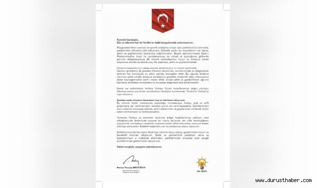 Cumhurbaşkanı Erdoğan, mektubunu şehit yakınları ve gazilere dua ve iyi dileklerle tamamladı: